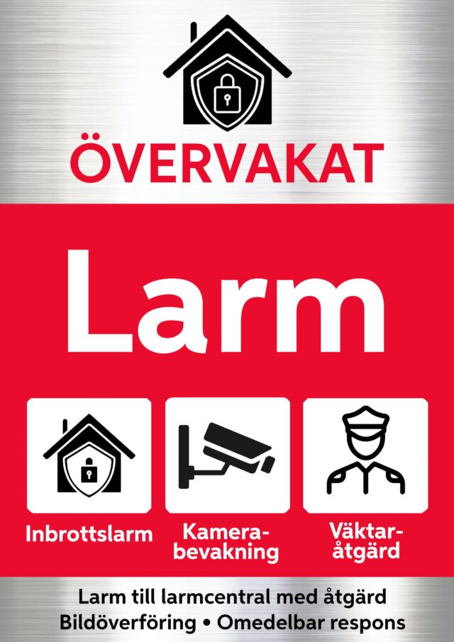Extra stor larmdekal. Förstärk säkerheten med våra aluminiumlarmdekaler, skapade för att stå emot tuffa skandinaviska klimatförhållanden. Perfekta för utomhusbruk.